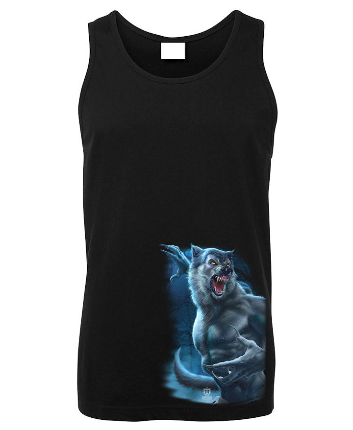 Werewolf Side Print Mens Singlet (Black) - Art by Tom Wood